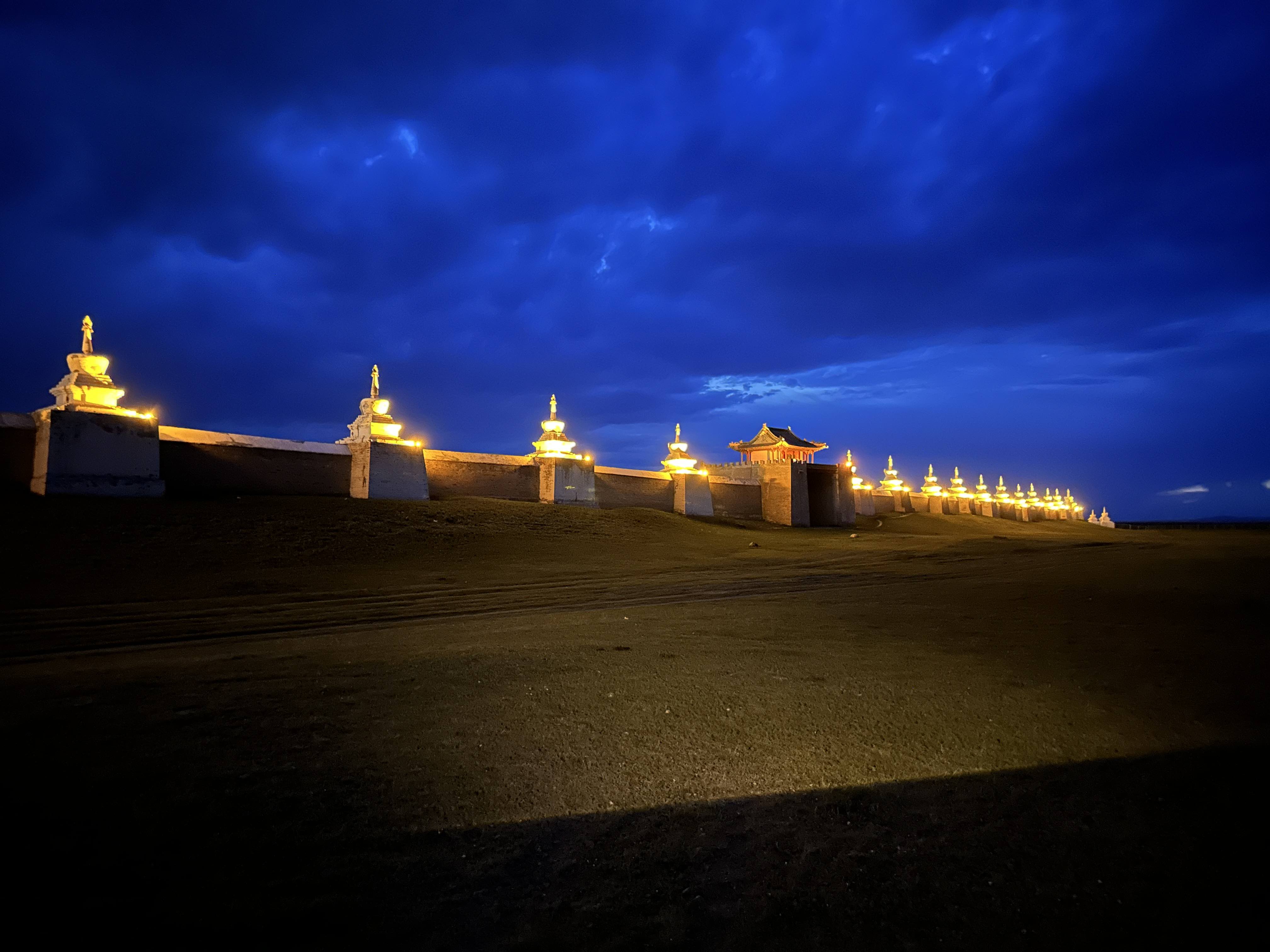 Aus den Überresten der Gebäude der einstigen Hauptstadt sind übrigens große Teile des 1586 gegründeten Klosters Erdene Zuu errichtet worden. An dessen Mauer kampieren wir.