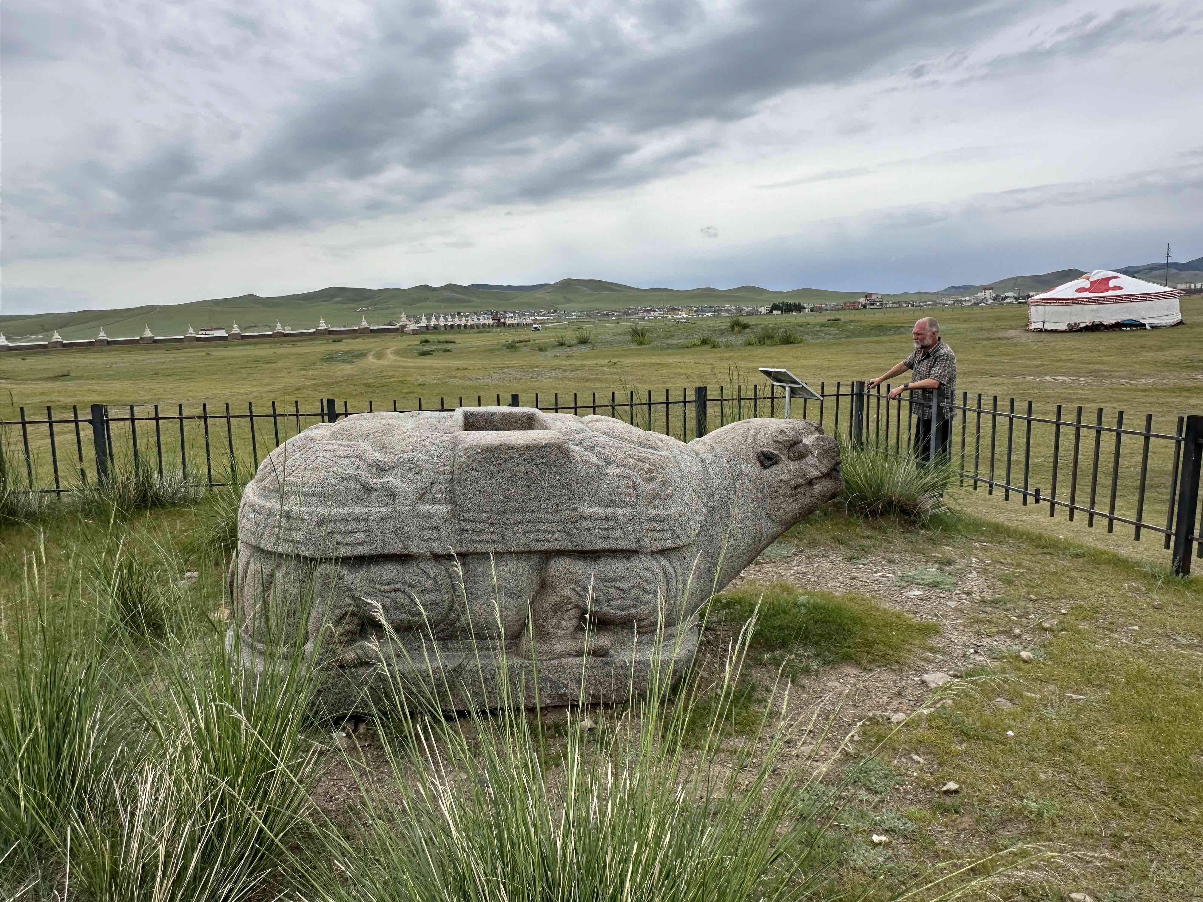 Wir fahren weiter nach Kharakorum, der einstigen Hauptstadt Dchingis Khans, von der heute außer zweier Steinschildkröten nichts mehr zu sehen ist. Bei Ausgrabungen ist man allerdings inzwischen auf weitere Überreste gestoßen, eine Rekonstruktion von Teilen der Stadt ist geplant. Eine Nachbildung des silbernen Baumes, der vom Pariser Goldschmied Guillaume Boucher geschaffen wurde, ist am Eingang des Museums in Kharakorum zu sehen. Zu festlichen Anlässen ergossen sich berauschende Getränke aus den Zweigen. Eine Abbildung des Baumes befindet sich auch auf den 10.000 Tugrik Scheinen.