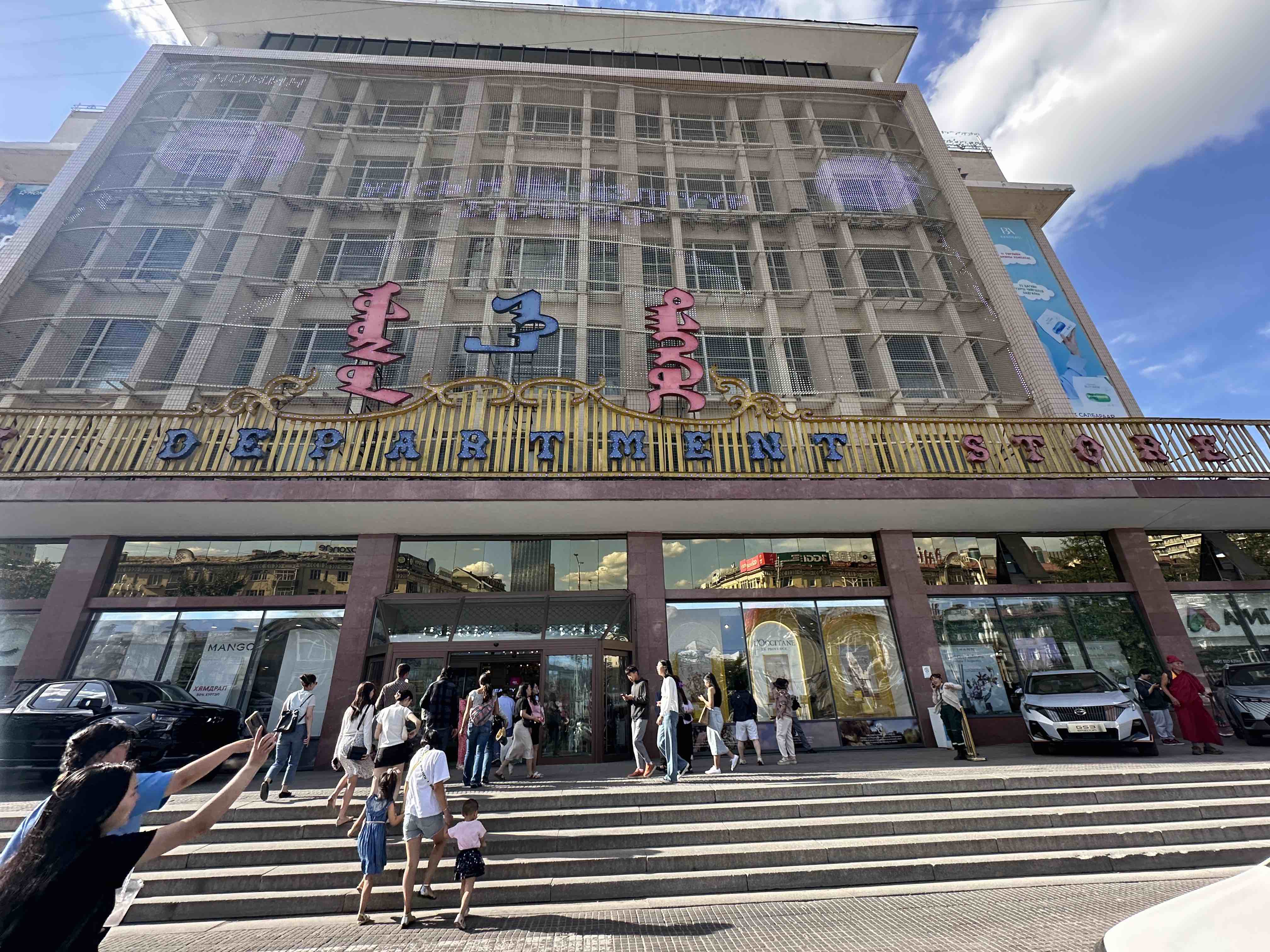 Den nach ihm benannten Platz besichtigen wir ebenfalls. Direkt nebenan ist das riesige neue Gebäude von „Gobi Cashmere“ und ich muss mir auch noch deren Kollektion anschauen. Eine unglaubliche Auswahl an Kleidung wird angeboten, aber auch hier werde ich nicht fündig. Am liebsten hätte ich nur Wolle gekauft, die wird aber hier nirgends angeboten, schade!