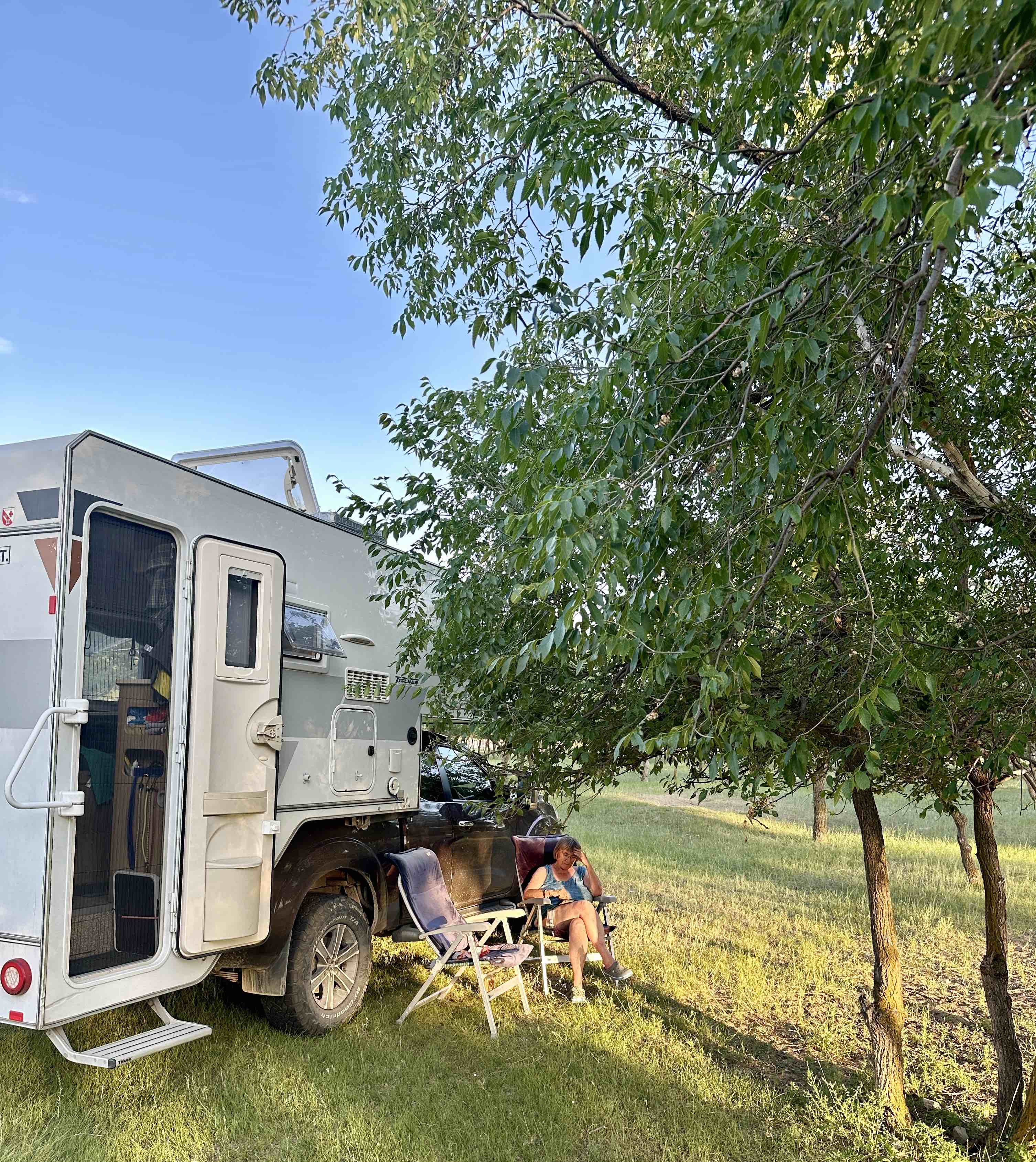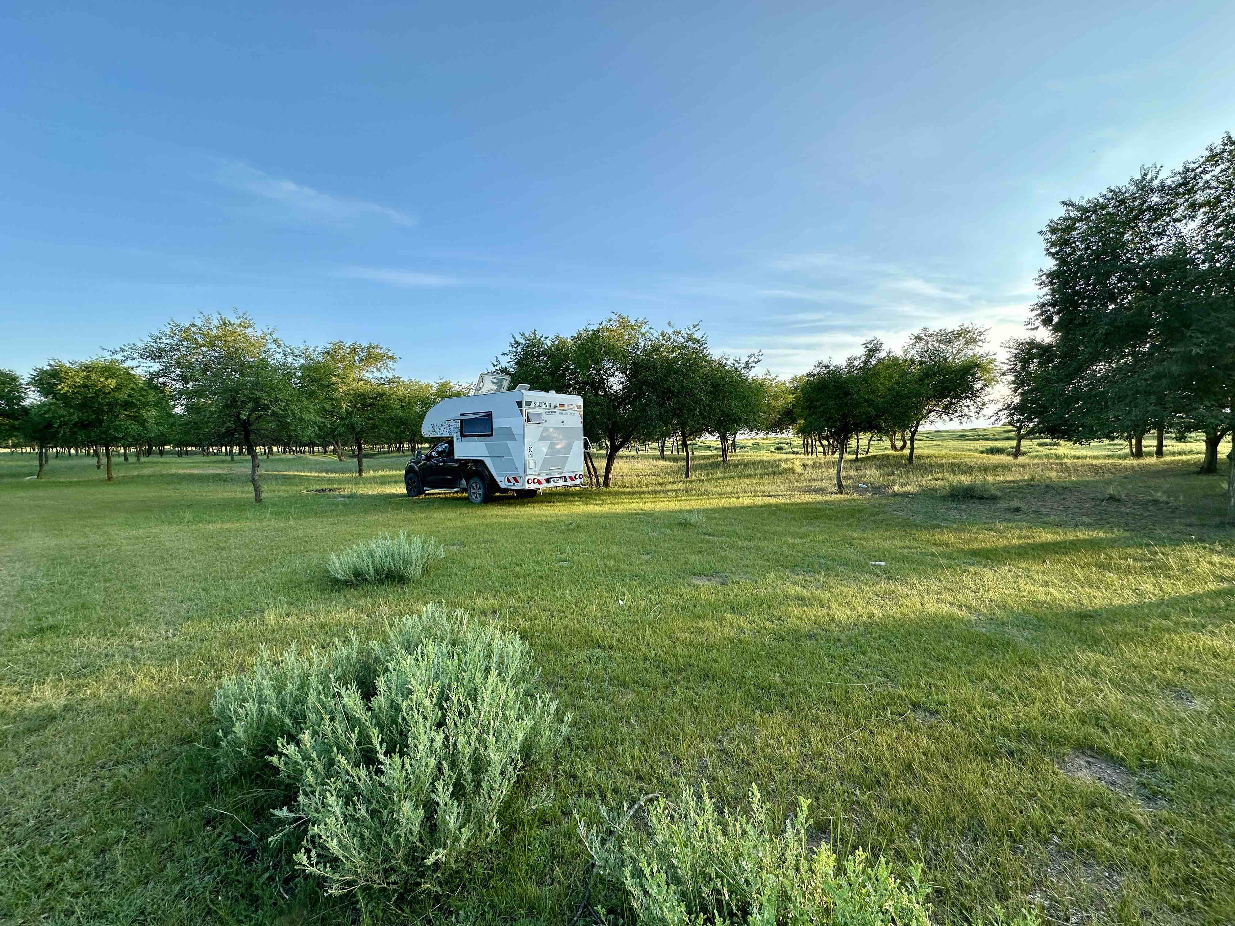 Am nächsten Tag fahren wir bis kurz vor die mongolische Grenze und übernachten in einem kleinen Wäldchen, dessen Schatten bei 36 Grad höchst willkommen ist!
