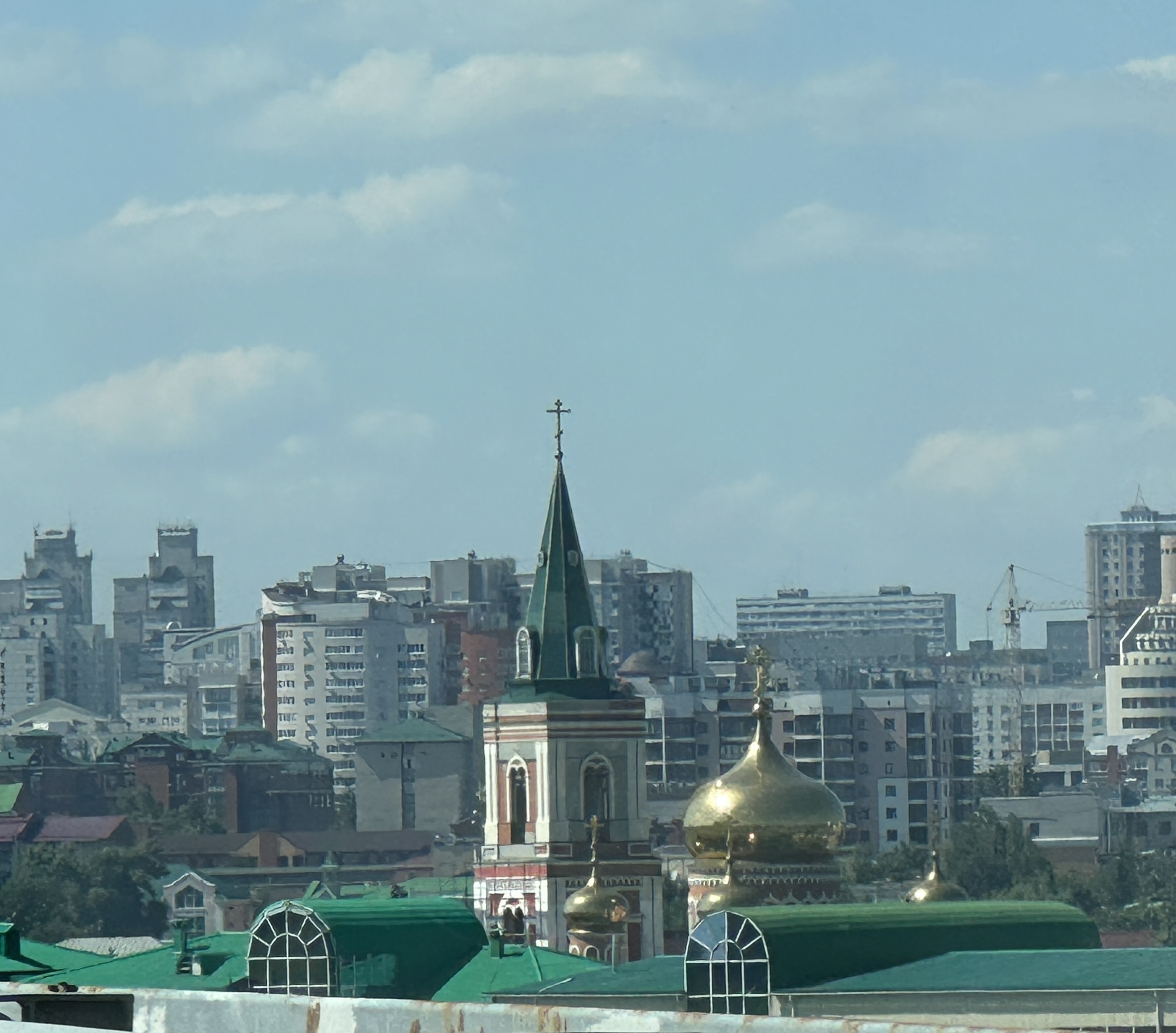 Wir werden über unsere Reisepläne ausgefragt, über unsere Familie, Militärdienst und tatsächlich über unsere Meinung zur Spezialoperation in der Ukraine. Unsere eher neutral gehaltenen Antworten geben keinen Anlass zu weiteren Maßnahmen. Mein Handy wird noch nach Fotos durchsucht und er schaut sich ein paar der chinesischen interessiert an.